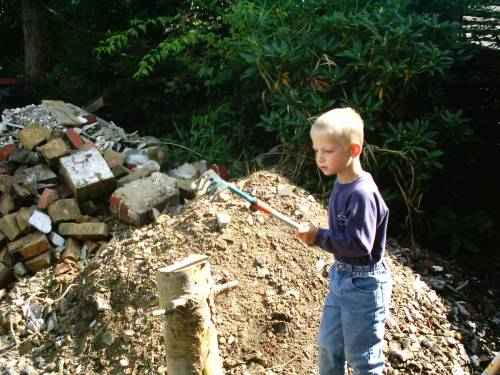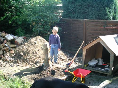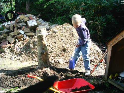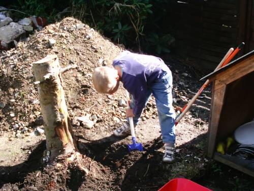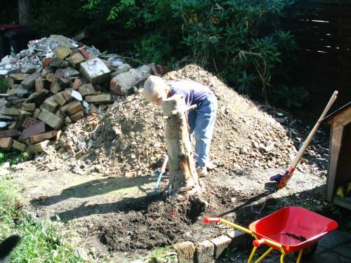 Und so kam es dann auch. Ich hatte keine Lust mehr (hatte schließlich noch Wichtigeres vor an diesem schönen sonnenüberflutenden Nachmittag...) und Papa nahm es in die Hand. Schwupsdipups weg war die Wurzel. Ein Foto gibt es nicht davon. Vielleicht später einmal ;-)) |